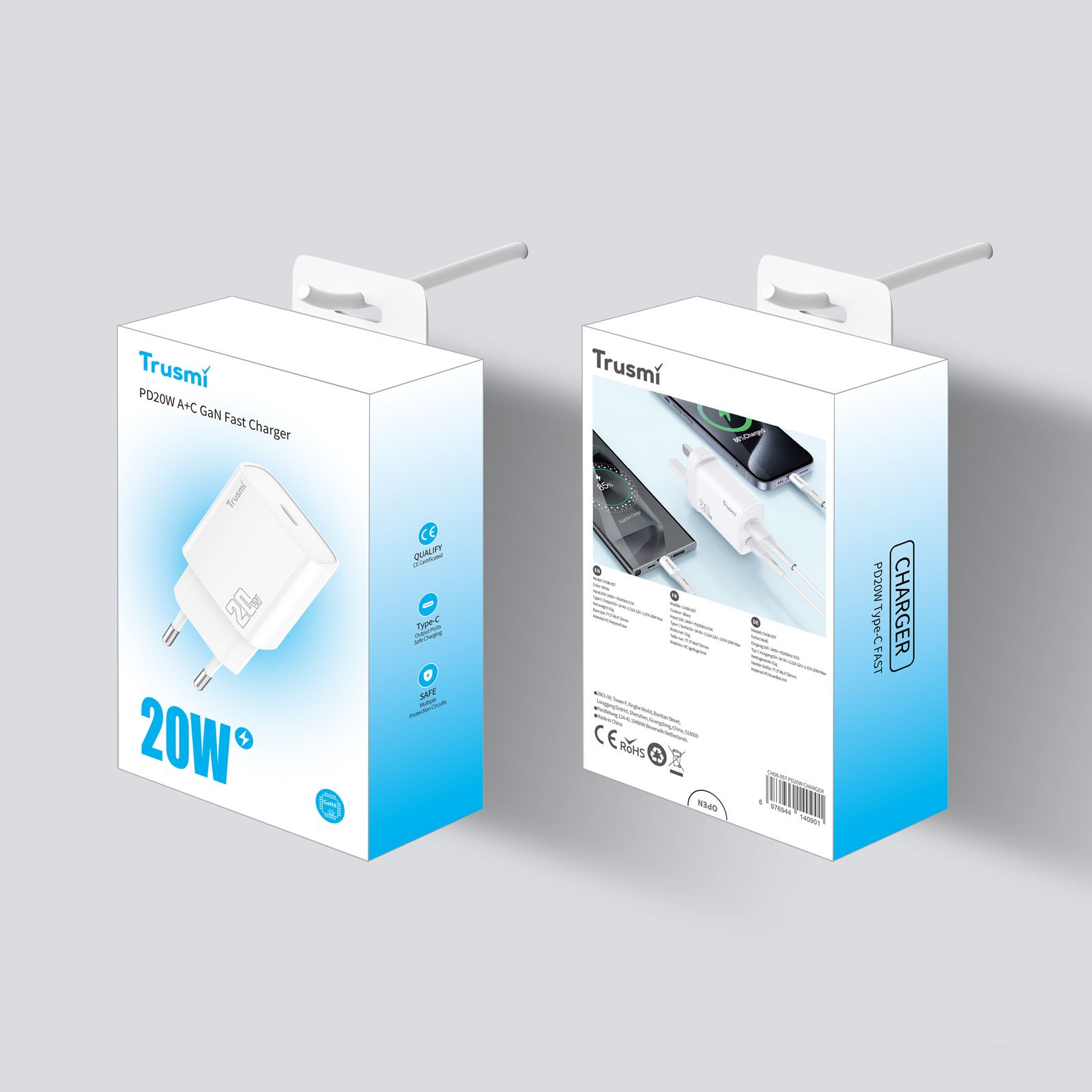 De Trusmi CH08-057 is een krachtige wandlader met een focus op snelheid en veiligheid. Dankzij de moderne USB-C aansluiting en een vermogen van 20W is deze lader uitermate geschikt voor het efficiënt opladen van de nieuwste smartphones, tablets en andere USB-C apparaten.